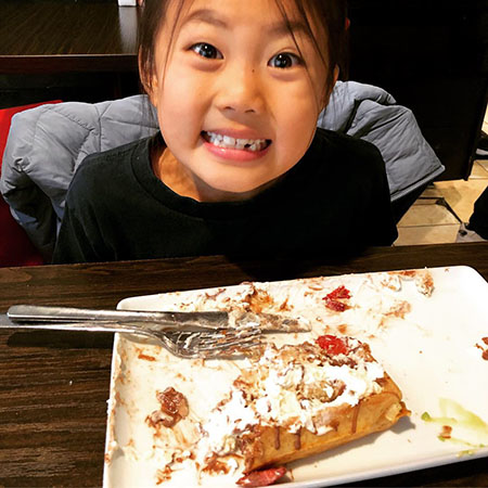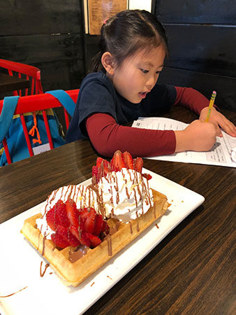 This morning, we found a place that serves waffles for breakfast. Yum!