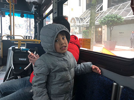 Peanut’s biggest request was to ride one of the city buses. So, that’s what we did.