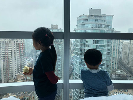 It rained a bit while we were at the park but we made it back to the hotel before it started to snow!