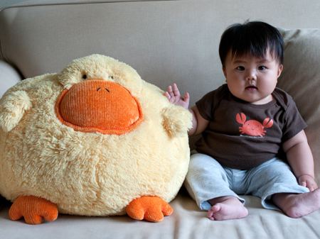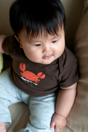 It’s about 1 am right now and Janie just fell back asleep 30 minutes ago. She’s been sleeping like a champ these past couple months but this week she’s seemed a bit fussier. Even Mirian reported that she’s been crying a little more during the day. Tonight she woke up starving at about midnight. She’s probably going through her 6-month growth spurt so I fed her and chalked it up to that. Then, it dawned on me to check her mouth. As soon as I placed my finger in her mouth, I felt a bottom tooth right in front! By golly, she’s teething too!!! Amazing! You can’t see them very well right now since they’re just surfacing so I didn’t take a photo but I sure will once they’re completely out! Wow, she’s actually handling this much better than I had expected. Looks like we’re just about ready for solids!!!