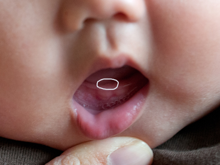 It’s a really thin white line that’s kind of translucent right now and just peeking out of the gum.