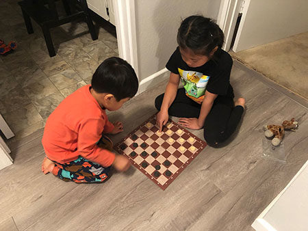 They spent the rest of the warm afternoon outside with sidewalk chalk, spray bottles, balls, and trucks.