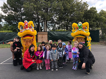 Peanut’s class took a picture with the lion at the end of the performance.
