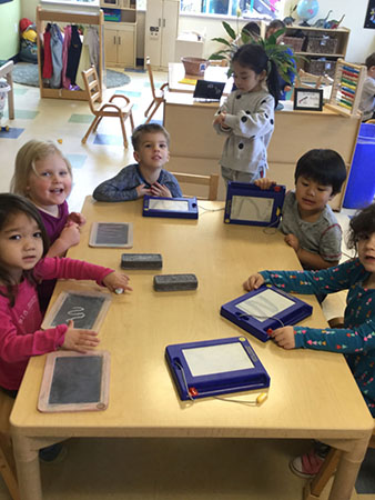 On our last morning in Hawaii, we had breakfast nearby and Peanut practiced writing his name while we waited for our food.