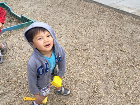 It was Peanut’s first day back at school after his long 2-week vacation in Cerritos. He cried when he arrived but his teacher said he was ok by circle time. It must have been extra tough for him since it was a new class that he had just started before his trip.