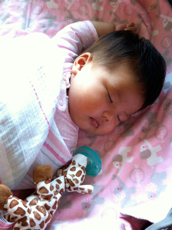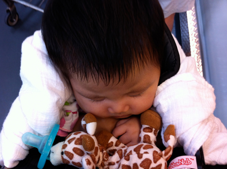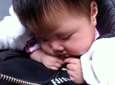 Janie took a nap in Mommy’s arms at Peet’s Coffee this afternoon.