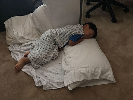 This morning we were up early and the kids learned quickly that the day of the week changes in the elevator!