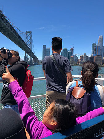 We rode on the top of the ferry this time and had a 360 view of the Bay Bridge as we floated underneath it.