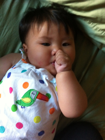 It’s the third hot day in a row and this little birdie dress was perfect! By the way, Janie’s been loving her thumb more lately.