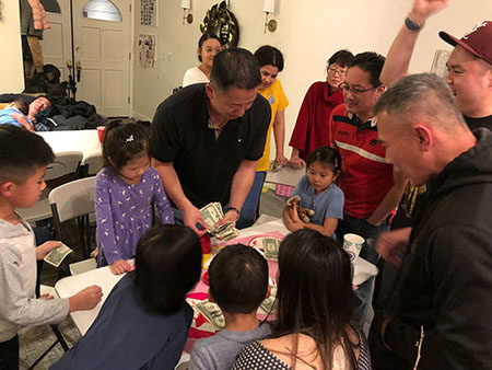 We celebrated Chinese New Year at Uncle Ian’s house and there were tons of kids and SO MUCH FOOD. Uncle Ben also taught the kids how to play a dice game and all the dads brought dollar bills to make it more interesting.