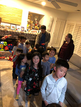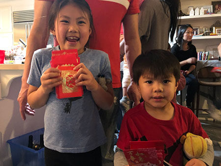 The best part for the kids was receiving their hong baos. The kids came home with 14 red envelopes each!