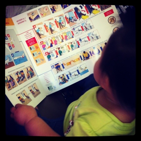 She also enjoyed looking at the safety info action card like a good little passenger.