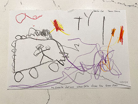 At the bottom, it says “My favorite part was when Pete drove the snow plow.”
