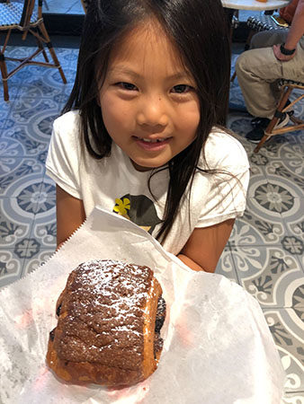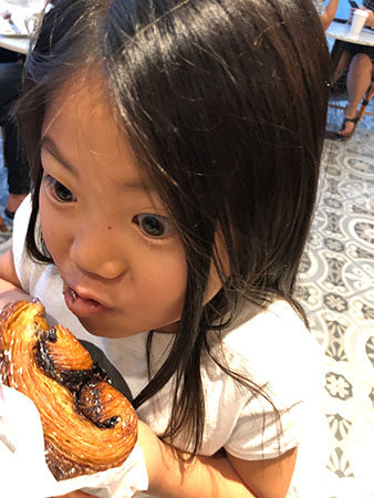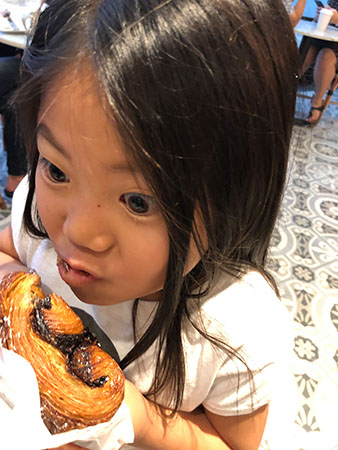 Janie was up early today and asked Mama, “can we go take a walk without the boys?” So we did and stopped at b. patisserie to pick up a chocolate croissant on our way to Marukame Udon.