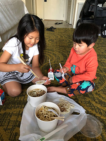 It started to rain a bit but that didn’t stop us from getting some udon and spam musubi for breakfast.