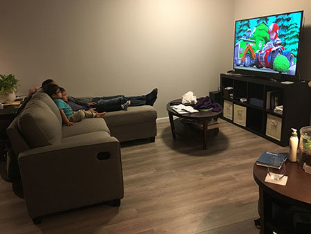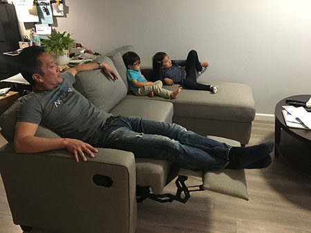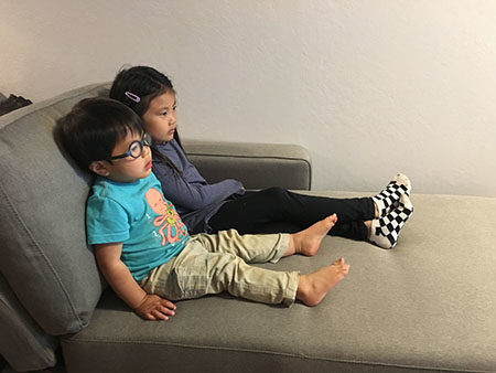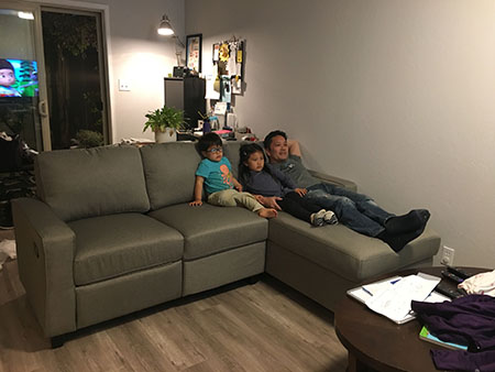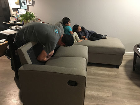 Daddy’s been wanting to get a sofa that could comfortably fit the whole family. It arrived today and the kids tried out the chaise part of it while the rest of it was being assembled.