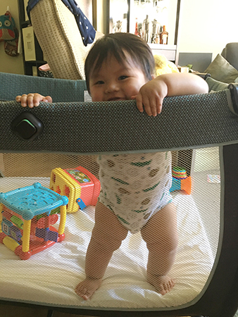 This morning, Peanut pulled himself up to a standing position for the first time.