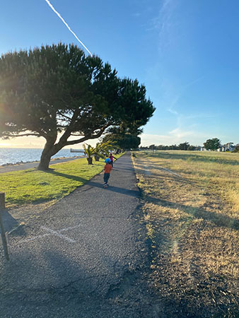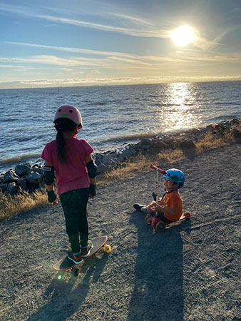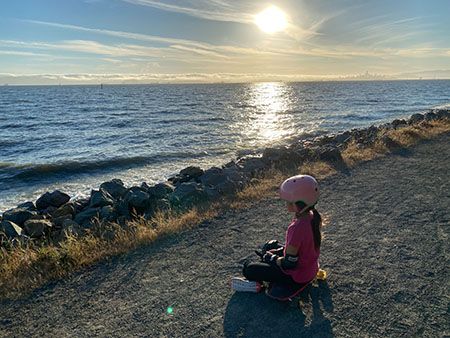 Mama came home from work to a grouchy, frustrated family this evening. So we went out for a ride outside after dinner.