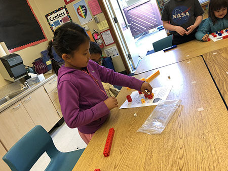 Janie’s class did 1st grade rotations today and Mama volunteered the whole morning to help out. Each class rotated classrooms and teachers for different subjects and Mama went along with the class throughout the morning. This is Janie in her math rotation working on doubles.