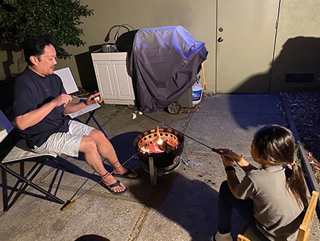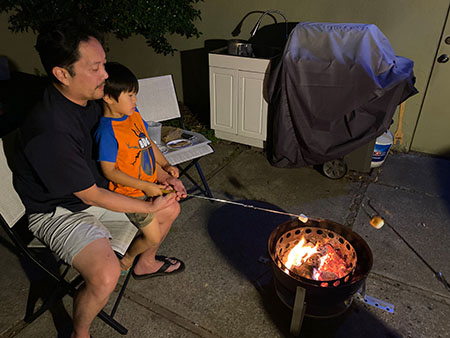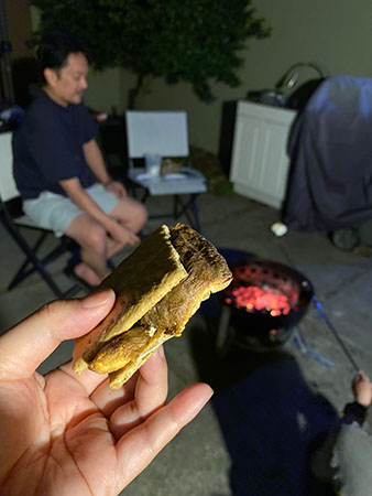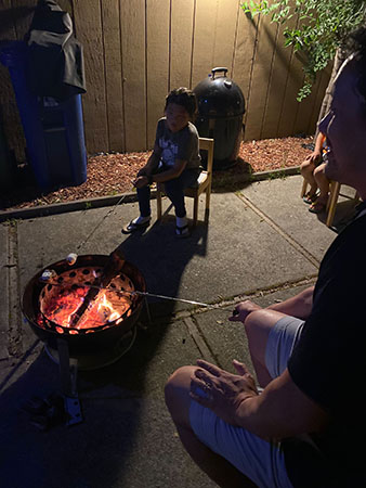 Dada had a brilliant idea this evening after dinner. He took the top off his smoker to make a firepit and we toasted marshmallows in the patio.