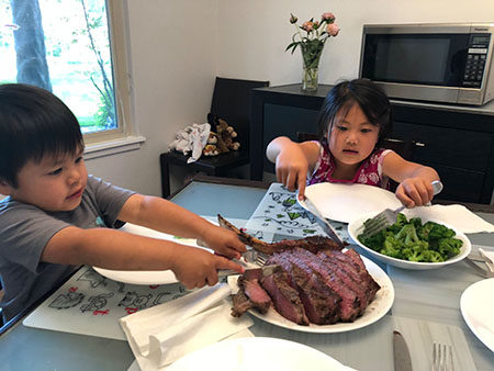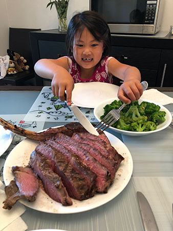 eating, expressions Steak! July 1, 2018 No Comments Daddy smoked a tomahawk steak today and the kids hung out on our new camping chairs to keep Dada company in the patio. Here’s the finished steak! Yummy!!! After dinner, the kids took a shower and then we made cookies for dessert! smile Previous Post Next Post You may also like November 5, 2020 Uncle Jason’s Birthday June 17, 2017 Room Service July 1, 2015 Walnut Creek Leave a ReplyYour email address will not be published. Required fields are marked *Comment * Name * Email * Website Δ