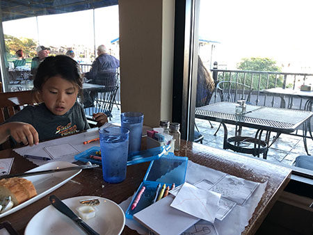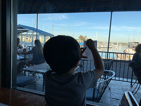 We tried a new dinner place today. It’s in Ballena Bay with a view of the water out front and the harbor in the back.