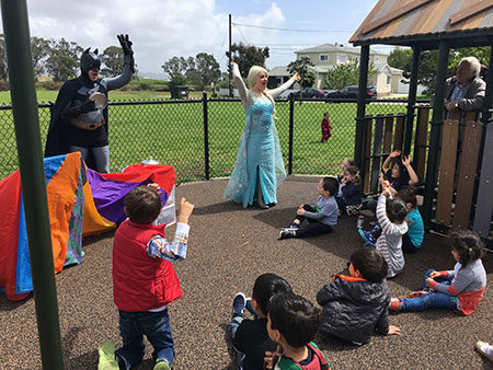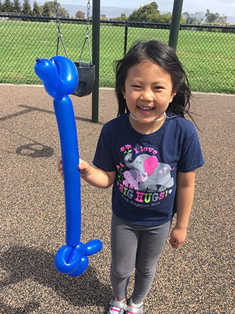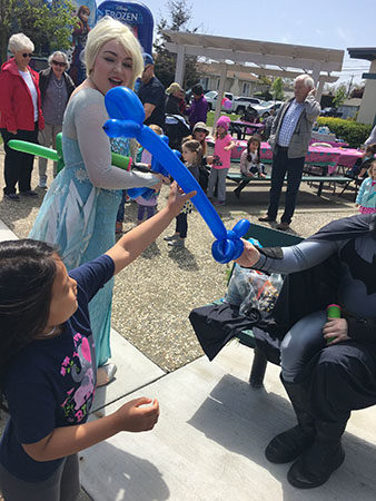 She met Elsa and Batman, who also made balloon animals. Janie got a blue giraffe.