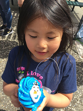 In addition to the Frozen bounce house, Janie also enjoyed a cupcake complete with blue frosting and an Olaf candy on top.