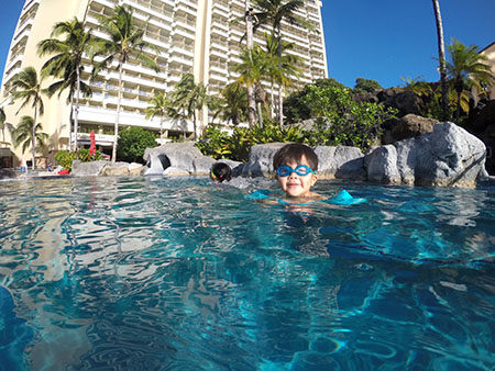 We spent the whole morning at the hotel pool. Now that the kids are so comfortable in the water, it was fun capturing them on video with the GoPro.