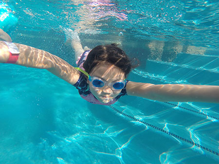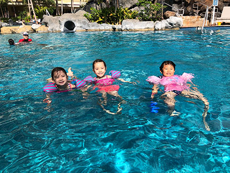 We spent the whole morning at the hotel pool. Now that the kids are so comfortable in the water, it was fun capturing them on video with the GoPro.