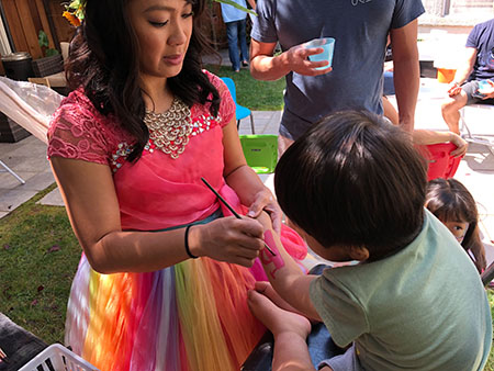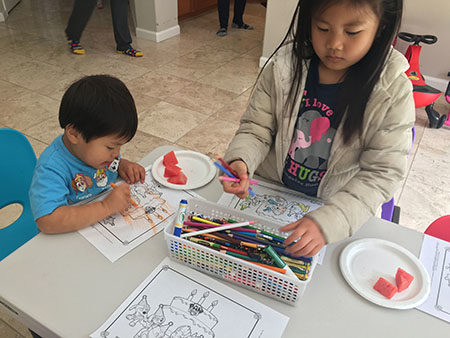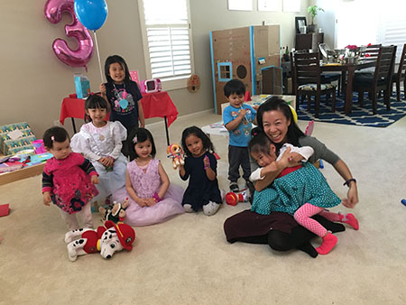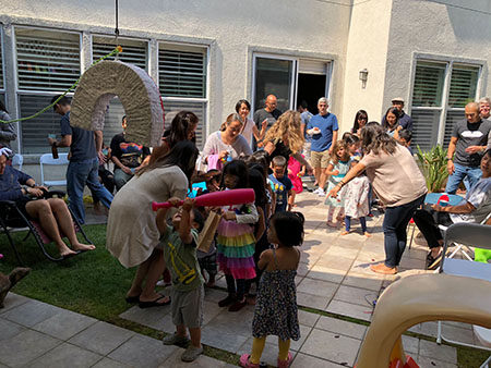 This evening, we went to Zoe and Maya’s house for dinner. We joined a few other families from Bay Farm and there were 13 kids there tonight! All the kids either went to Bright Horizons (Peanut’s school), still go to Bright Horizons, or attend Earhart School (Janie’s school).