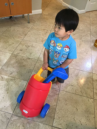 Peanut also found such joy in playing with this pretend microwave. He spent at least an hour making “grape soup”.