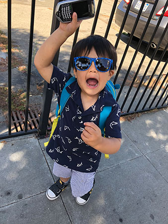This little guy insisted on bringing his backpack and imitated Dada on our walk back to the car with his sunglasses on and phone in his hand.
