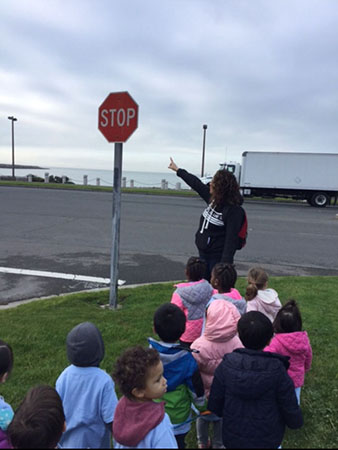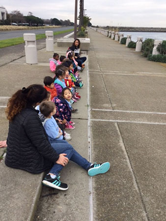 On their Thursday walk, they ventured out to the bay and learned about the STOP sign on the way.