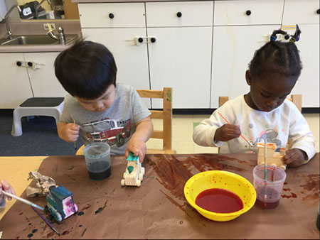 This month, Peanut is learning about transportation. Today, he painted a train.