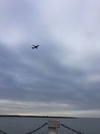 They spent part of their walk sitting by the water and counted the airplanes that flew by.