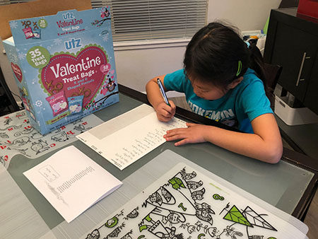 We went the easy route this year with valentines. Janie wrote a To/From label to each student in her class and everyone gets a bag of pretzels.