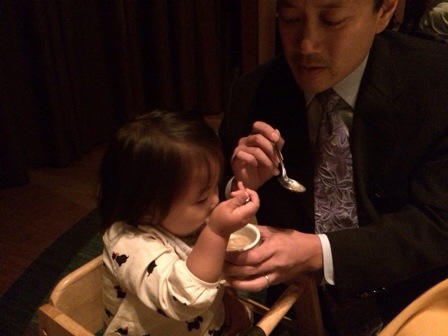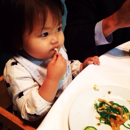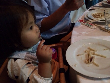 Dinner went really late and when we thought she was ready to sleep, she perked up for the noodles.